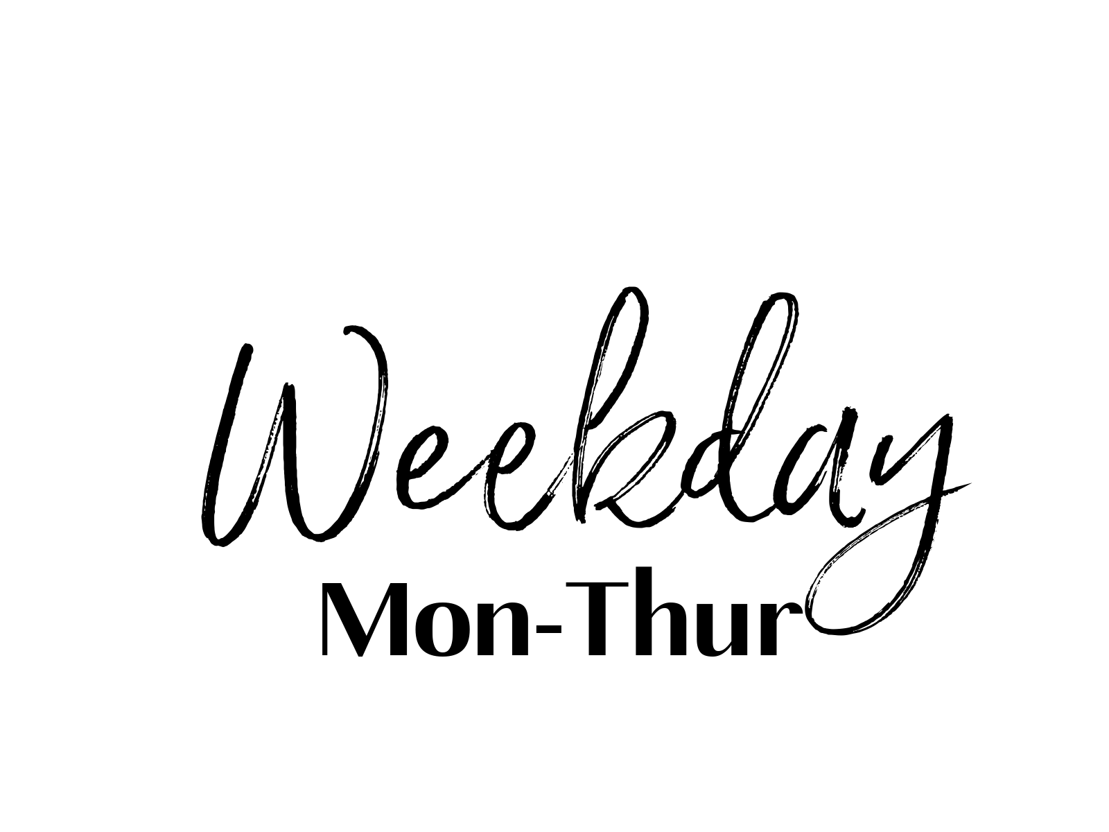 Monday-Thursday. Each additional hour adds an additional $50/hr.